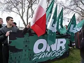 | Idéologie | Nationalisme polonais National-radicalisme Ultranationalisme National-syndicalisme Antimondialisme Euroscepticisme dur Antiaméricanisme Anticapitalisme Antisionisme[3] Troisième position Écologisme radical (en)[4] Néofascisme Corporatisme[5] Distributionnisme[5] Anticommunisme[6] |