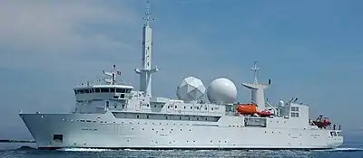 Russie : le renseignement d'origine électromagnétique soviétique est mal connu et éclipsé par les activités d'espionnage humain de l'URSS. Pourtant, l'Union soviétique est le pays qui a consacré le plus de moyens au monde pour le ROEM, qui devint sa principale source de renseignement à partir des années 1970[40]. L'URSS avait plusieurs services impliqués dans le renseignement d'origine électromagnétique, notamment à la fin de la guerre froide la seizième direction du KGB et la sixième direction de la GRU (direction générale du renseignement) de l'État-major de l'Armée rouge. Leurs effectifs réunis étaient estimés à 350 000 personnels travaillant dans environ 500 postes d'écoute en URSS et à l'étranger. L'ensemble formait un système plus efficace, mais moins efficient, que ses homologues occidentaux. L'URSS avait également des postes d'interception installés dans une centaine d'établissements diplomatiques dans plus de soixante pays, et des systèmes ROEM sur des diverses plateformes dont des sous-marins, des navires de surface, une vingtaine de types d'aéronefs, trois types de satellites distincts, et divers véhicules terrestres. Le ROEM soviétique se distingue par l'utilisation de navires dédiés à cette tâche, ainsi que par l'emploi intensif de camions sous couverture civile, circulant notamment en Europe occidentale sous le régime du transit international routier[41]. Le KGB et la GRU avaient chacun un service de décryptage. Il semble que la plupart de leurs succès eurent lieu non pas par cryptanalyse mais par l'utilisation d'appareils clandestins pour obtenir le texte clair avant qu'il ne soit chiffré, ou via des agents qui leur fournissaient les clés de chiffrement[42]. Par ailleurs, les activités de ROEM des pays membres du pacte de Varsovie étaient coordonnées par un service appelé groupe de coordination (puis appareil de coordination) qui était commandé par un officier soviétique[43].