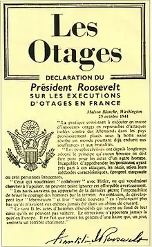 Malgré tout, Stülpnagel doit tenir compte de la politique dictée par Berlin : le , il publie, à destination des chefs de régions militaires un « code des otages » dans lequel il demande l'établissement de listes constituées en fonction des priorités suivantes[9],[10] :