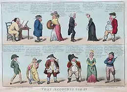C'est le gentleman de l'époque georgienne qui annonce celui de l'époque victorienne, en mettant en place un code de conduite fondé sur the three Rs (« les trois R ») : Restraint, Refinement and Religion (Retenue, Raffinement et Religion)[28]. Sous le règne de George III, les Britanniques commencent à se démarquer, par leur réserve et le contrôle de leurs émotions, des peuples du Sud de l'Europe dotés au contraire d'un tempérament bouillant[29]. Pourtant, la littérature du XIXe siècle fait encore une large place à l'émotion, souvent poussée, comme chez Dickens, jusqu'au pathos[30].