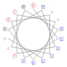 Une représentation en roue hélicoïdale est un type de projection ou de représentation visuelle utilisé pour illustrer les propriétés des hélices α des protéines. La séquence des acides aminés qui forment la structure secondaire hélicoïdale est tracée avec un angle de 100° entre résidus consécutifs de telle sorte que la représentation finale donne une vue de l'hélice le long de son axe.