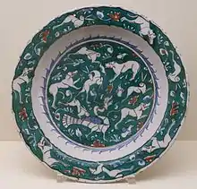 La céramique d'Iznik est rarement figurative. Toutefois, dans la seconde moitié du XVIe siècle, on note la présence de composition utilisant des animaux.