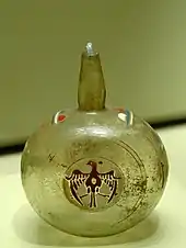 Au contraire, d'autres lieux voient les images figuratives se multiplier sur tous types de supports. C'est le cas de l'Égypte et de la zone syro-anatolienne avant les années 1350. On y voit se développer de « véritables créations picturales » dans les métaux[75], mais aussi une riche iconographie dans la céramique[76] et dans le verre émaillé et doré.