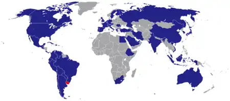 Voici les représentations diplomatiques de l'Uruguay à l'étranger :