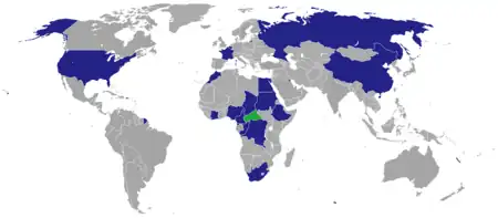 Voici les représentations diplomatiques de la République centrafricaine à l'étranger :