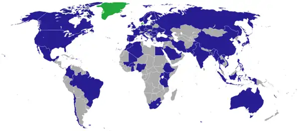 Ceci est une liste des représentations diplomatiques du Danemark. Le Royaume de Danemark en tant qu'État souverain se compose de trois pays intégrés à la communauté du Royaume (Danemark (proprement dit), Groenland, Îles Féroé) et dispose de 64 ambassades à l'étranger[1]. Dans les pays où il n'y a pas de mission danoise, selon le Traité d'Helsinki, les agents des services étrangers de l'un des pays nordiques doivent assister les citoyens d'un autre pays nordique si ce pays n'est pas représenté sur le territoire concerné[2].