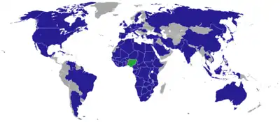- (en) Cet article est partiellement ou en totalité issu de l’article de Wikipédia en anglais intitulé « List of diplomatic missions of Nigeria » (voir la liste des auteurs).