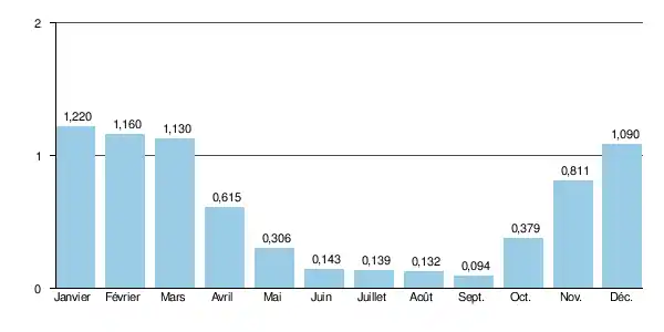 Les crues peuvent être importantes, compte tenu de l'exiguïté du bassin versant. La série des QIX n'a pas encore été calculée faute de temps d'observation suffisant pour le faire valablement.
