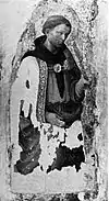 - à gauche : saint indéterminé (à gauche) ; probablement Antoine, prénom d'un des fils du commanditaire représenté avec lui en donateurs