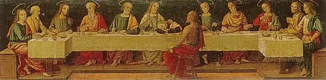 La prédelle (qui complétait en bas le retable) représente une seule scène : La Cène, conservée à Gemäldegalerie de Berlin.