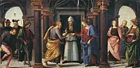 La transformation de l'image de Marie est désormais opérée par Le Pérugin avec une physionomie de Marie plus mûre, simple et sévère en harmonie avec le climat spirituel instauré à Florence par Savonarole.