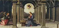 Dans ces scènes l'artiste a utilisé des schémas habituels, comme le portico a sfondo, la mandorle, située dans un doux paysage ou une vallée, ainsi que divers intérieurs dans des compositions où l'espace est suggéré par les perspectives géométrique et aérienne du paysage.