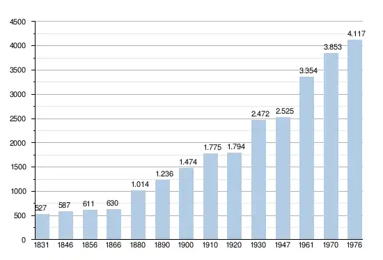 • Sources : INS, Rem. : 1831 jusqu'en 1970 = recensements, 1976 = nombre d'habitants au 31 décembre.