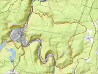 La commune s'est étendue, en plusieurs périodes, sur trois méandres de la Meuse en six quartiers :