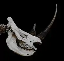 Sa corne est la plus longue de tous les rhinocéros, elle atteint en moyenne 65 cm (exceptionnellement 1,50 m). Sa fonction principale est de déblayer les obstacles lors de la quête de nourriture.[réf. nécessaire]