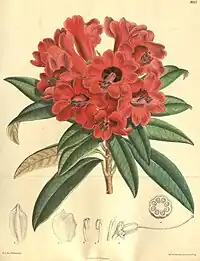 Le , il récolte le spécimen ci-contre de rhododendron aux « fleurs rouge cerise, arbre à gros tronc peu élevé ayant jusqu’à 40 cm, tête arrondie, 7 à 8 m, rameaux tortueux » note-il sur la feuille d’herbier.