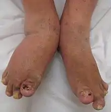 Le rhumatisme psoriasique aussi appelé arthrite psoriasique, est une complication du psoriasis, consistant en une atteinte inflammatoire[1] de certaines articulations ou tendons, de mécanisme immunologique.