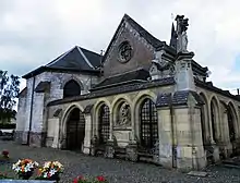- Françoise de (La) Rosières, dame de Ribeaucourt (ou Rambaucourt), que Saint-Allais[26] dit fille de Walerand de Rosières et de Barbe de Licque, mariée après 1507 à Antoine de Boubers[27], écuyer, seigneur de Bernâtre, déjà deux fois veuf, (d'après Froissart). Le château était constitué alors d'un logis rectangulaire simple à hauts pignons qui a fait place au donjon primitif dont seules subsistent la cave en forme de croix latine et deux tours, l'une servant de chapelle (qui sera abattue au XIXe siècle et l'autre de pigeonnier, toujours existante. La seigneurie passe à leur fils :