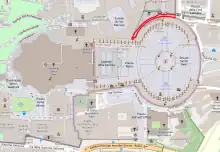 Photographie prise depuis le Ricciolo d'Italia : le sol est en territoire italien, mais la colonnade de la place Saint-Pierre sur la droite et les bâtiments sur la gauche sont au Vatican. | |