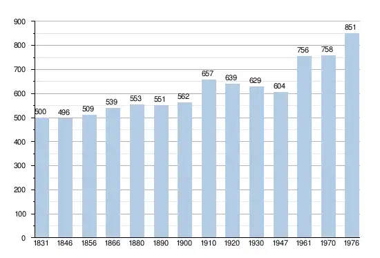 - Sources : INS, Rem. : 1831 jusqu'en 1970 = recensements, 1976 = nombre d'habitants au 31 décembre.