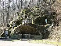 Cette grotte de Lourdes se trouve à l'entrée du village et est installée dans la roche[30].