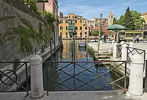 À l'origine, le canal était traversé par un pont privé reliant le Campo de la Carità au Palazzo Marioni, et deux ponts publics : un au Campo de la Carità, l'autre à la Calle Larga Pisani. Un quai longeait le canal à l'ouest de la Calle Gambara à l'ancienne Calle del Cimbalo, un autre à l'est, allant de la Calle Larga Pisani à l'ancienne Calle Balecca.