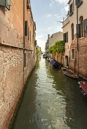 Le rio longe une partie du couvent tardif du XIVe siècle ee Sant'Alvise, propriété des sœurs Canossianes.