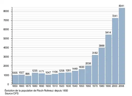 Le graphique suivant résume l'évolution de la population de Risch-Rotkreuz entre 1850 et 2008[4] :