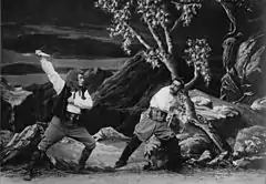 Une danseuse espagnole, devant une auberge dans les montagnes espagnoles, est courtisée par un contrebandier qui lui demande de l'épouser. Elle accepte. Plus tard, dans la chambre de la danseuse, un autre homme entre et déclare son amour pour elle. Le passeur, entrant inaperçu, entend la déclaration d'amour et une violente dispute éclate entre les deux rivaux pour l'affection de la danseuse. Les prétendants voyagent jusqu'à un endroit éloigné dans les montagnes et se battent jusqu'à la mort. Le contrebandier gagne le combat quand l'autre prétendant tombe sur un précipice. Retournant dans la chambre de la danseuse, le passeur vient à la rencontre de sa bien-aimée, mais elle le refuse quand elle découvre qu'il a tué son rival. Le contrebandier se poignarde de désespoir. La danseuse, courant vers son cadavre, touche ses mains et est repoussée pour les trouver couvertes de sang[2].