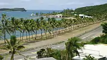 Délimitée par les baies de Koutio-Kouéta au nord-ouest et de Boulari au nord-est, la côte où se situe Nouméa forme une succession de baies qui offrent un éventail d'activités : baignade (plages de l'anse Vata, de la baie des Citrons, de la baie de Magenta, de l'anse du Kuendu à l'extrémité ouest de Nouville), plaisance et nautisme (baie de Sainte-Marie, marinas des baies de l'Orphelinat et de la Moselle), port touristique (petite rade et quai Jules-Ferry) ou commercial et industriel (grande rade, baie de Numbo). Comme l'essentiel de la côte occidentale de la Grande Terre, le littoral nouméen était essentiellement constitué de mangroves, mais il est estimé aujourd'hui qu'entre 23 à 26 % de celle-ci a été détruite depuis 1960 du fait de l'urbanisation[15]. Il existe toutefois encore certaines zones de mangrove, comme dans le fond de la baie de Sainte-Marie au sud-est, celui de la baie de Koutio-Kouéta à l'arrière de la zone industrielle ainsi qu'à Rivière-Salée au nord-ouest, ou à Tina.