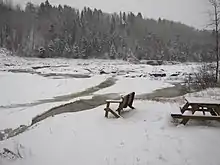 • 3,0 km vers le nord-est en formant un grand S près du village des Escoumins jusqu'à son embouchure, situé en aval du pont de la route 138[2].