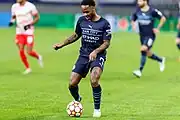 Pour sa troisième saison avec Manchester City, il ne débute pas le championnat. Le , Mahrez, avec l'international français Aymeric Laporte sont testés positifs au Covid-19[175]. Cependant, Riyad Mahrez sera asymptomatique au virus et par conséquent placé à l’isolement. Après des rumeurs qui parlaient de l’intérêt du Real Madrid, le président du club Florentino Perez précise que son club ne recrutera personne durant ce mercato d’été[176]. Au bout de deux semaines de repos, Mahrez fait son entrée contre Bournemouth en coupe de la ligue, où son équipe gagne 2-1[177]. Le , pour son 200e match, il marque son premier but de la saison d'une splendide reprise[178], face à son ancien club de Leicester City. Dans ce même match, il sera aussi passeur[179], son but sera élu plus beau but du mois de septembre par les supporters des Sky Blues[180]. Le , il réalise un coup du chapeau (la deuxième de son histoire en Premier League) contre Burnley FC, où il marque respectivement à la 6e, 22e et 69e minutes de jeu (victoire des Sky Blues 5-0)[181].