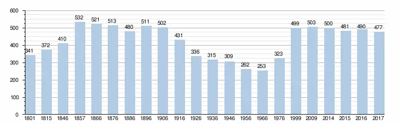 Le graphique suivant reprend la population résidente au 1er janvier de chaque année pour le village.