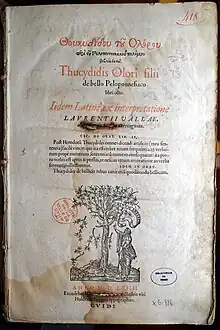 - le même ouvrage (1546, 1549), in-16, appelé communément O mirificam, parce qu'il est accompagné d'une préface latine qui commence par ces mots. Dans la préface de l'édition de 1549, le mot plures est écrit pulres, et l'on a prétendu que c'était la seule faute d'impression qu'il y eût dans l'ouvrage ; Michael Maittaire en a cependant trouvé quatre dans le texte grec ; il est vrai que cette édition n'a point d'errata, et que les douze fautes indiquées dans l'errata de l'édition de 1546 sont corrigées dans celle de 1549.