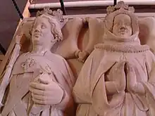 Robert Ier et son épouse Élisabeth, d'après une fresque au château de Heidelberg. | |