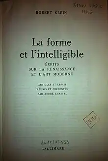 - Notice biographique sur Robert Klein, R. Klein, La Forme et l'intelligible, Paris : Gallimard, 1970, p. 487-488.