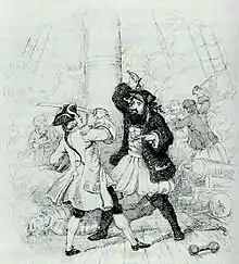 Le duel entre Barbe Noire et le lieutenant Maynard (détail d'un tableau de Jean Leon Gerome Ferris). | ||