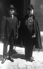 Gaston Arman de Caillavet et Robert de Flers, auteurs de la pièce de théâtre L'Habit vert, dessin d'Yves Marevéry, 1912.