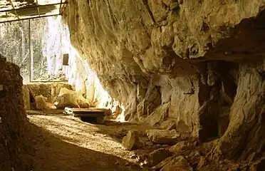 - en amont la cave Taillebourg[1] (anciennement cave à Lucien Jacob), plus profonde et qui correspond à un vestibule typique.