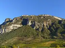 Vue du roc de Tormery depuis Chignin au nord-ouest. | |||