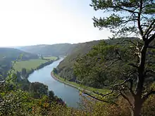 Le Château de Freÿr se situe sur la rive gauche de l'autre côté de la Meuse.