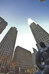- Le One Rockefeller Plaza - (130 000 m2)[27] - nommé à l'origine le Time-Life Building car son premier locataire était Time Inc., l'éditeur des magazines Time et Life.