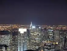 Le Comcast Building, gratte-ciel de 70 étages, constitue la pièce centrale du Rockefeller Center, avec une hauteur de 266 mètres. Il est localisé au 30 Rockefeller Plaza (ou 30 Rock) et s'appelait autrefois RCA Building et par la suite GE Building. L'immeuble a été rendu célèbre par la photographie Lunchtime atop a Skyscraper[26] (« déjeuner sur un gratte-ciel »), réalisée par Charles Clyde Ebbets en 1932 sur laquelle on voyait des ouvriers déjeuner assis sur une poutre, sans la moindre sécurité.