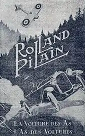 Bien que certains critiques de cinéma évoquent parfois une Bugatti[3], c'est bien une Rolland Pilain 2 litres Grand Prix -identifiable à la forme du radiateur, qui diffère nettement du "fer à cheval" des Bugatti- qui apparaît [4]dans le très avant-gardiste film de Marcel l'Herbier L'Inhumaine , chef d'oeuvre du muet et véritable manifeste cinématographique du style Art Déco . L'amoureux éconduit de l'héroïne du titre (incarnée par Georgette Leblanc), le trop sensible ingénieur Einar Norsen (Jaque Catelain) pilote à tombeau ouvert cette voiture de course (carrossée avec une pointe Bordino) sur les routes du Vexin, entre Mantes et Rouen et ce bolide, un des plus performants de l'époque, devient l'instrument de son suicide.
