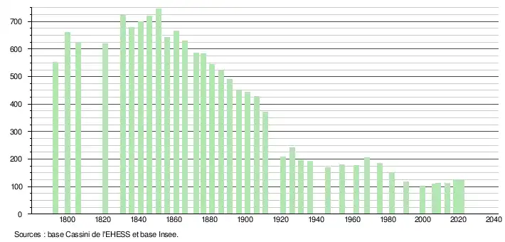 (Sources : Ldh/EHESS/Cassini jusqu'en 1999[18] puis Insee à partir de 2006[19].)