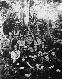 Roman Choukhevytch est appelé au nouvel état major. Les massacres de Volhynie et Galicie orientale, commencés le , culminent en [69] sous le commandement direct du colonel Kłym Sawur (en)[70]. La guerre civile implique également des groupes paysans d'autodéfense (Samoobronni Kouchtchovi Viadidy), des bandes de policiers de l'UP démobilisés, les melnykistes, l'UPA de Polésie dirigée par dirige Taras Borovets et renommée UNRA en juillet[71], les partisans soviétiques de Rivne et Jytomyr commandés respectivement par Volodymyr Behma et Oleksandr Saburov[66], l'AK fidèle au gouvernement polonais en exil.