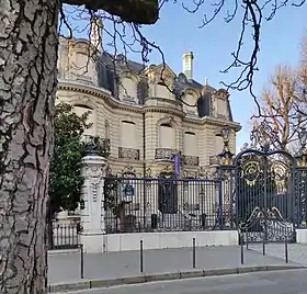 - No 7 : Hôtel d'Espeyran. Hôtel particulier construit en 1888 en style néo-Louis XV par l'architecte Henri Parent[11] pour Félicie Durand (1819-1899), veuve de Frédéric Sabatier d'Espeyran (1813-1864), d'une riche famille de négociants et propriétaires originaires de Montpellier, qui s'installe à Paris avec leur fils Guillaume (1850-1938) après le décès de son mari. L'hôtel est ensuite habité par la comédienne Sophie Croizette (1847-1901), avant qu'elle ne quitte le théâtre[12],[13]. Abrite aujourd'hui le siège de la maison de ventes aux enchères Artcurial.