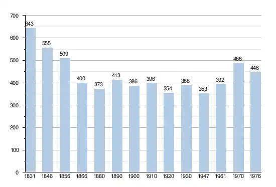 - Sources : INS, Rem. : 1831 jusqu'en 1970 = recensements, 1976 = nombre d'habitants au 31 décembre[2].