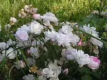 - 'Little White Pet', un sport buissonnant de 'Félicité et Perpétue', obtenu par Handerson, haut de 60 cm, aux fleurs en bouquets de pompons, constamment de juin à octobre[1].