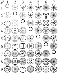 - 12k pétales si k est une fraction irréductible de dénominateur 6 et supérieure à 1 (exemples : 7/6, 17/6).